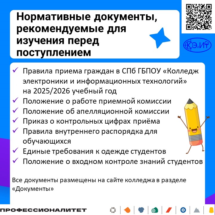 - СПб ГБПОУ «Колледж электроники и приборостроения» присоединяет к себе СПб ГБПОУ «Колледж информационных технологий», на основании Распоряжения Комитета по образованию от 19.11.2024 №1423-р «О внесении изменений в сеть государственных образовательных учреждений Санкт-Петербурга».